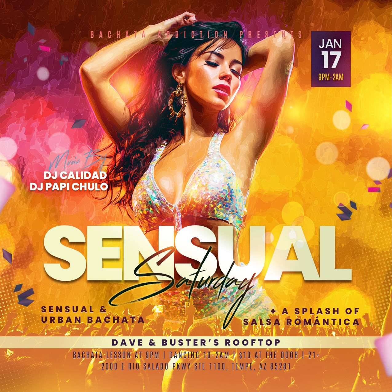 Standards of Conduct & Safety: Close physical contact is to be expected at a Latin dance event however that requires a heightened responsibility among attendees to observe good hygiene, respect one another, seek and receive consent to touch someone else, and refrain from potentially dangerous movements especially if impaired. The organizers reserve the right to refuse admission to or expel a Bachata Addiction event attendee WITH a full refund for hygiene or personal conditions that may put the health of other attendees at risk. The organizers reserve the right to refuse admission to or expel a Bachata Addiction event attendee WITHOUT A REFUND for repeated behavior that is harassive, predatory, violent, reckless or otherwise dangerous.